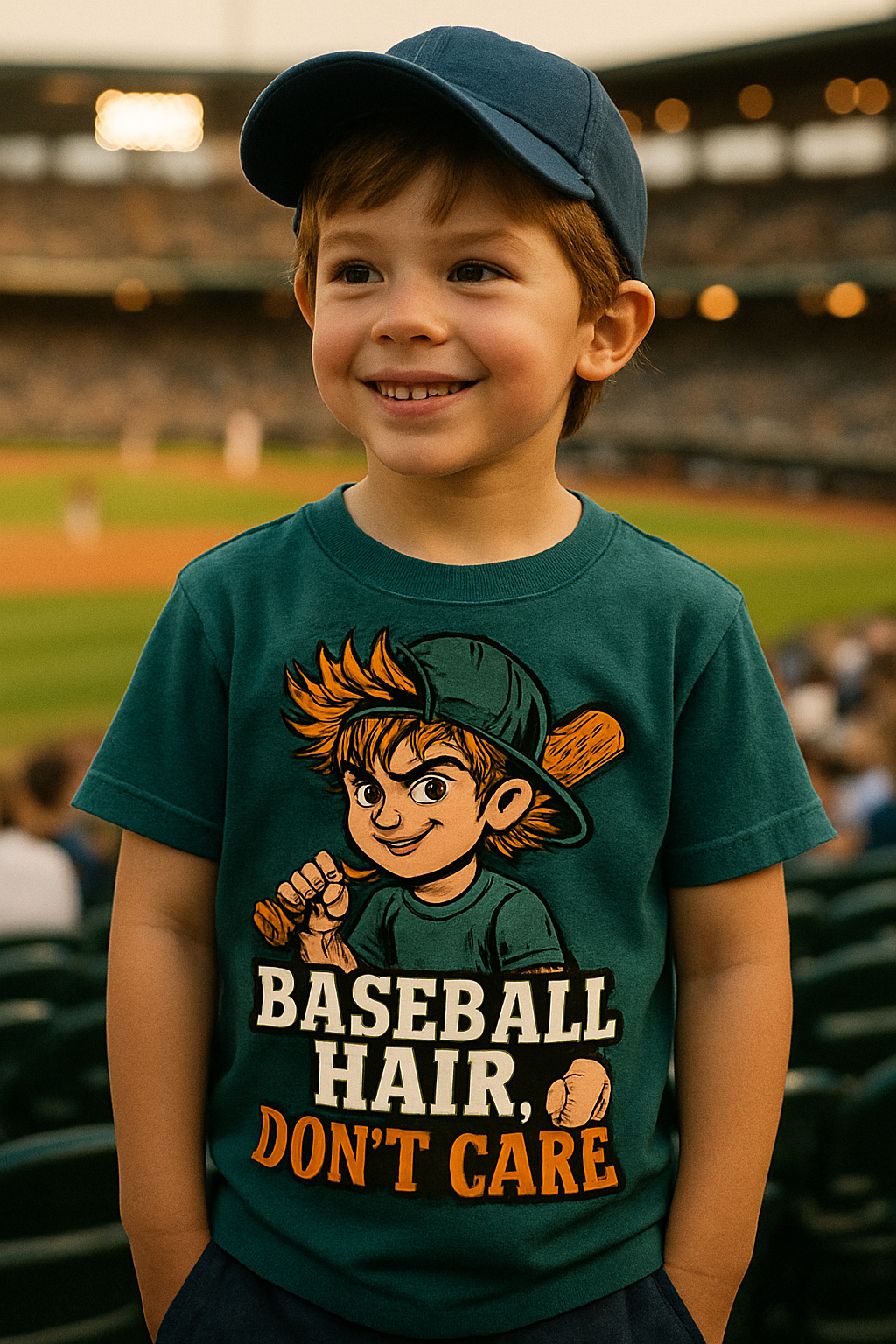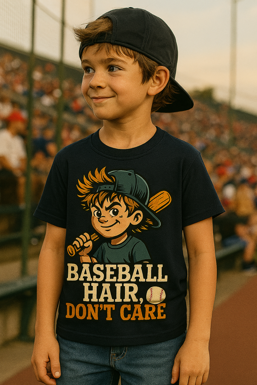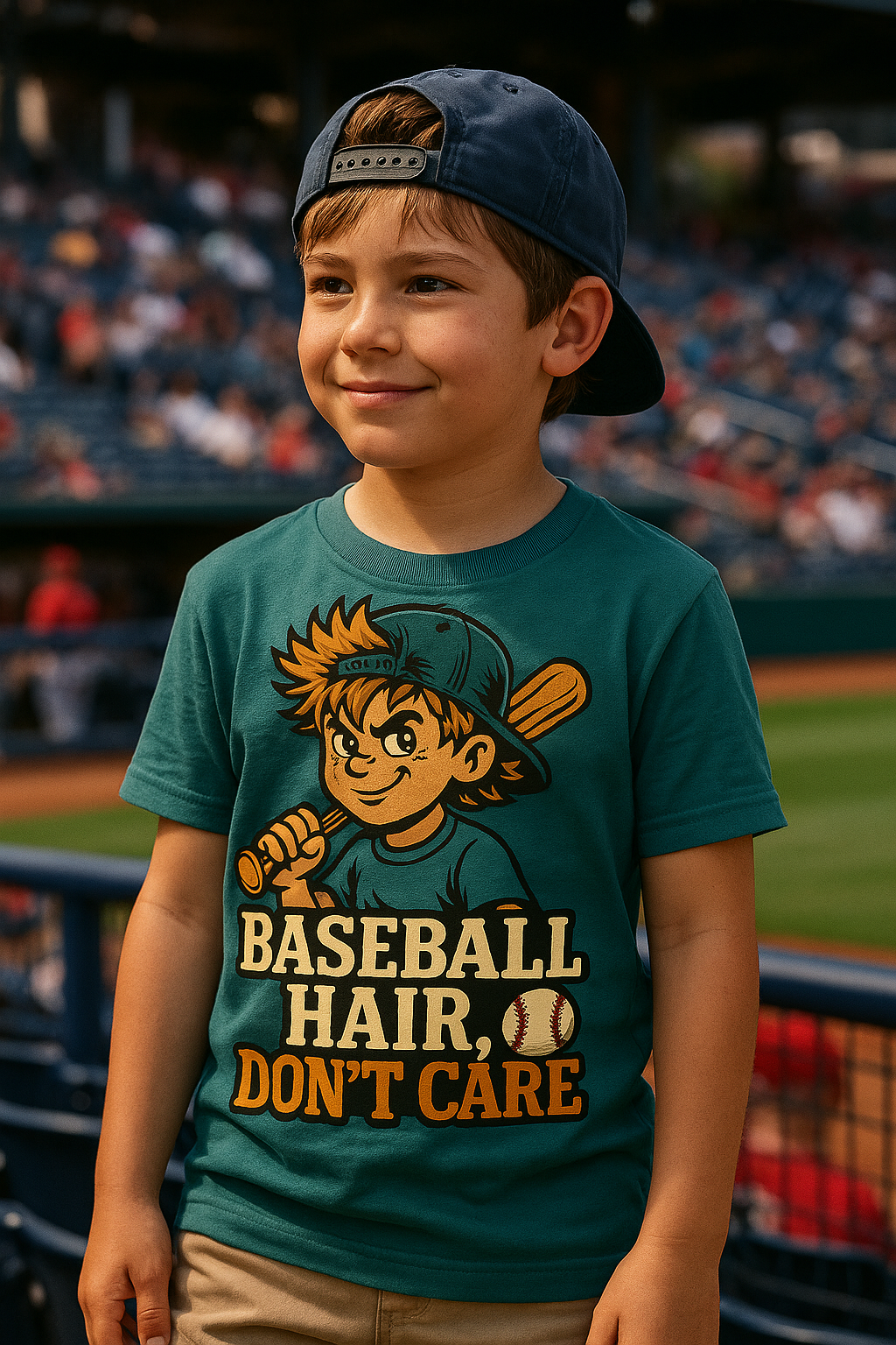 The Baseball Hair, Don’t Care tee is made for young ballplayers who roll out of bed ready to swing. With a fun, confident graphic and a cheeky message, this shirt brings personality to the plate.